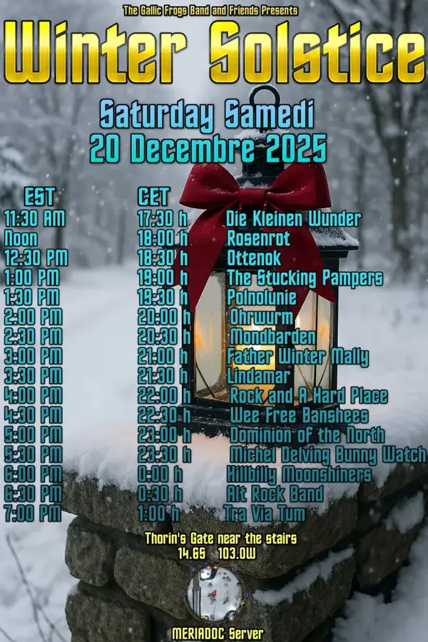 Die Veranstaltung findet vor Thorins Tor in der Nähe der Treppen statt (Koordinaten: 14.6S, 103.0W).