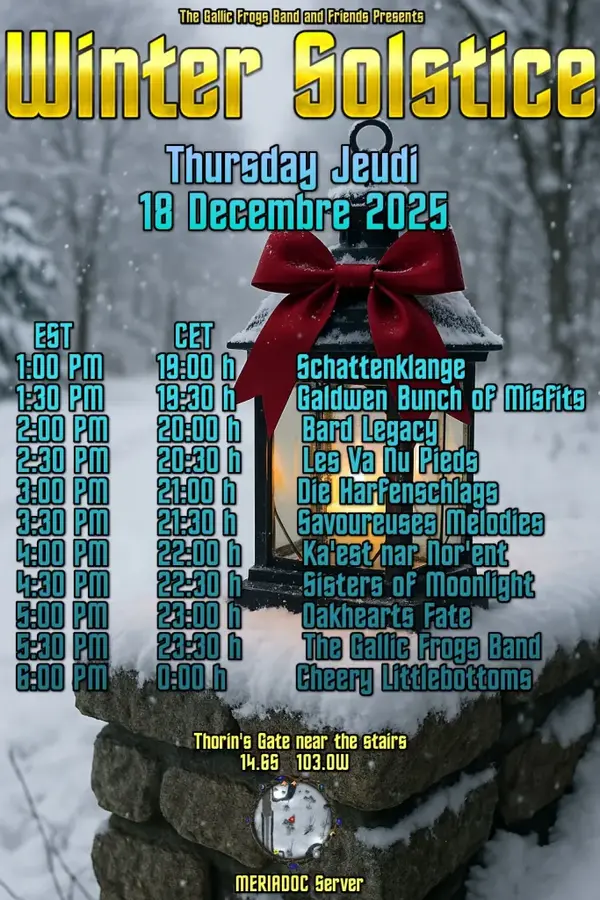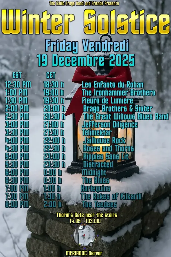 Die Veranstaltung findet vor Thorins Tor in der Nähe der Treppen statt (Koordinaten: 14.6S, 103.0W).
